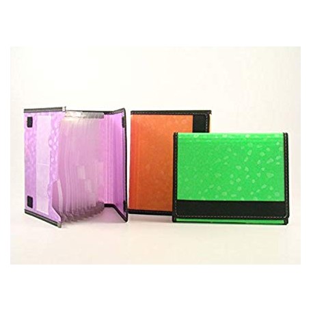 Per documenti A4 in pvc, bordatura in tessuto, 12 scomparti e portabigliettini. Tasca interna porta cd/dvd. Dimensione 27X13